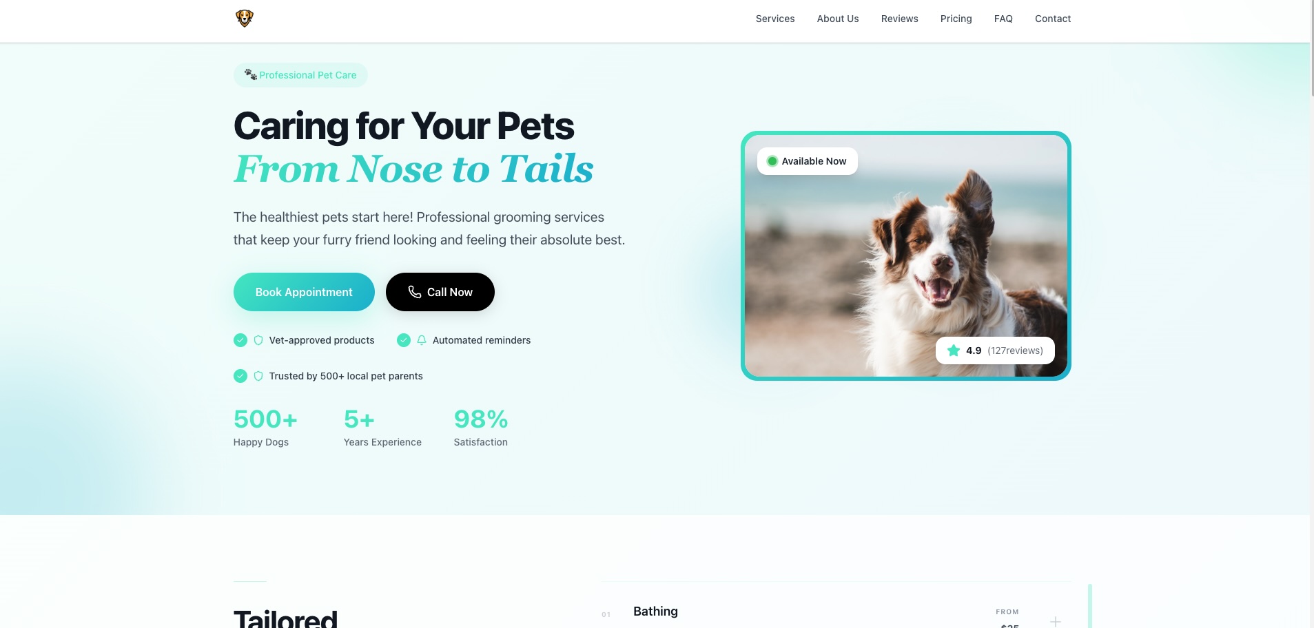 Get a state-of-the-art website built for your Pet grooming business in minutes. No technical skills required.